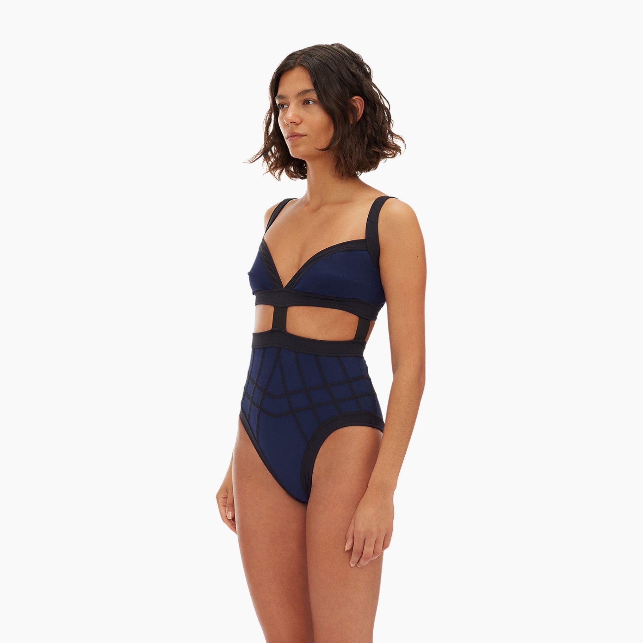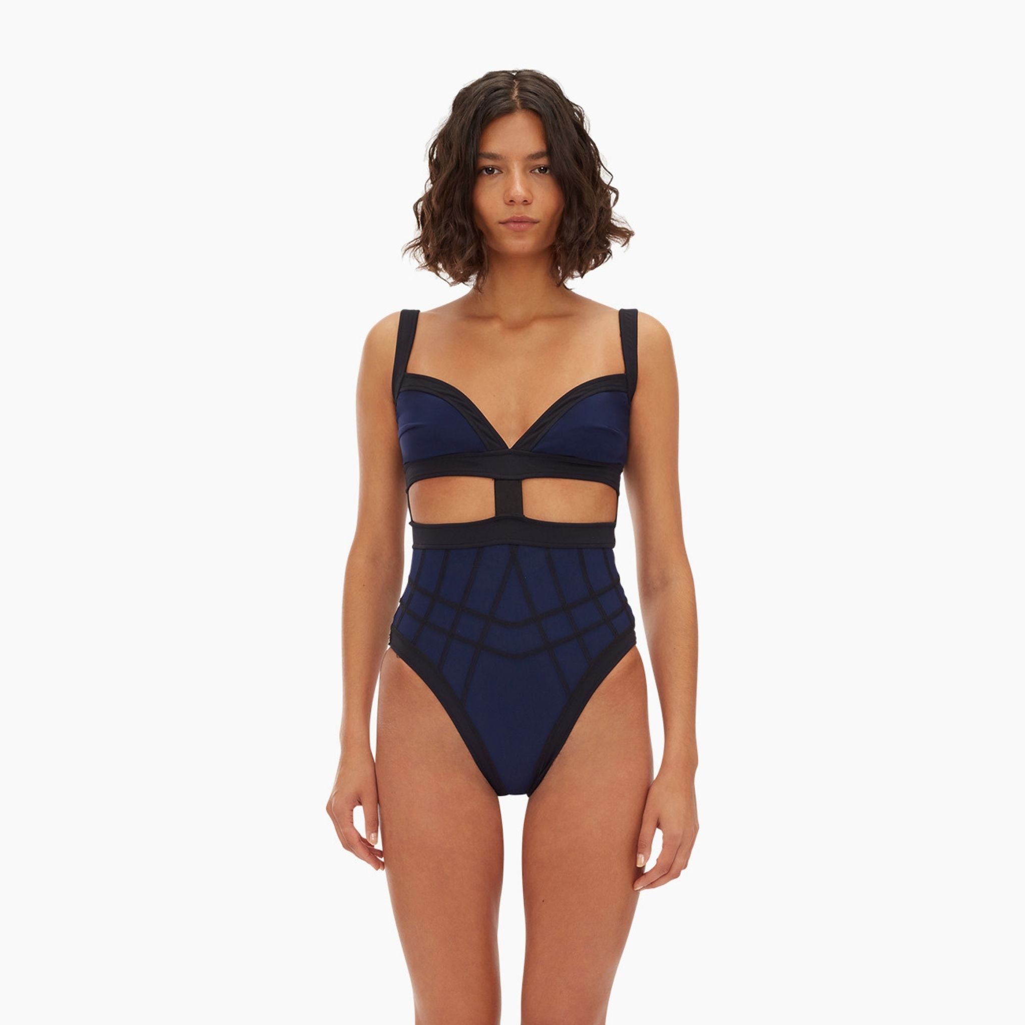Cut-out one-piece tailored in Italian control-sculpt fabric. Purposefully placed cutouts, signature stitching, and flattering wide-set shoulder straps. Designed to sculpt the core and lift the bum.