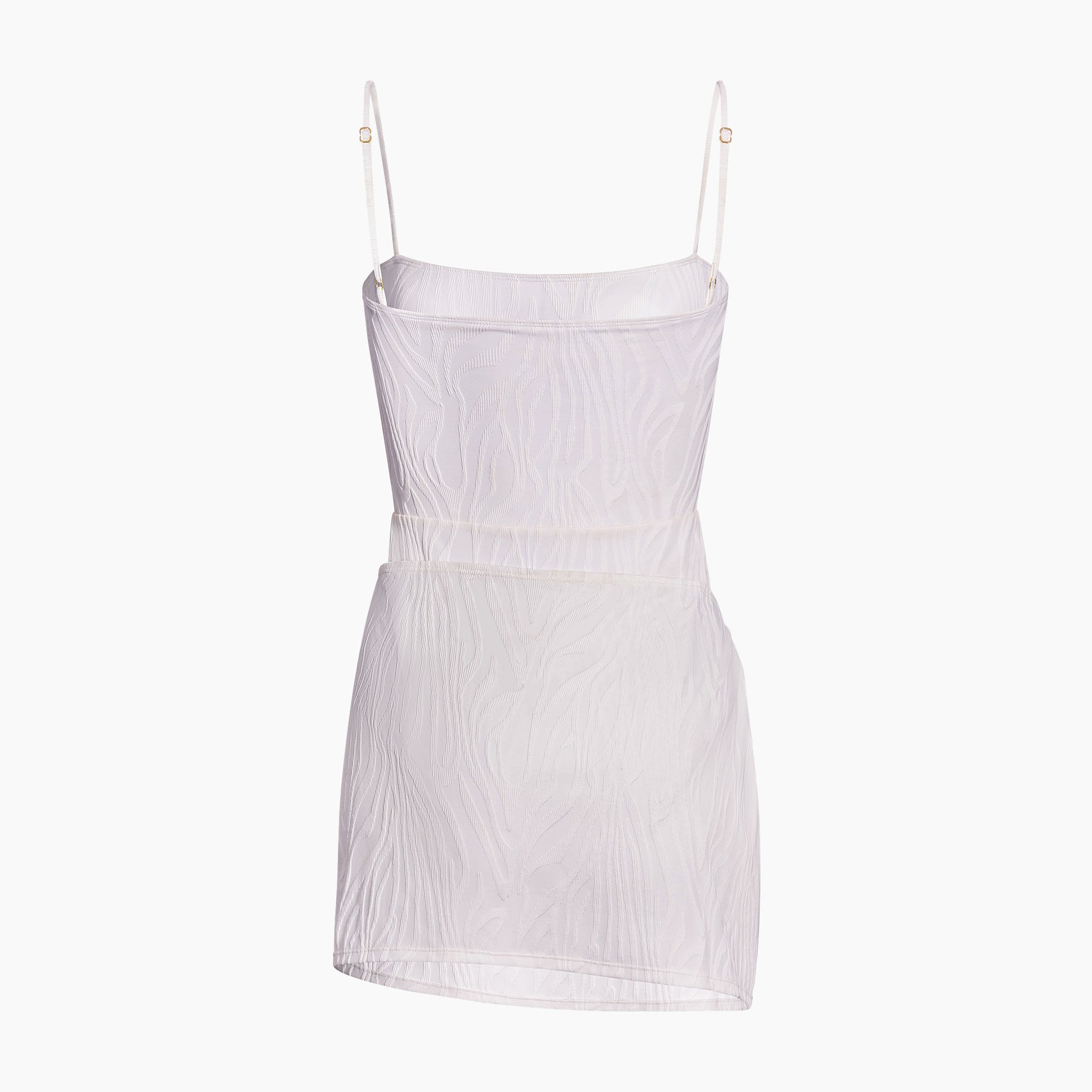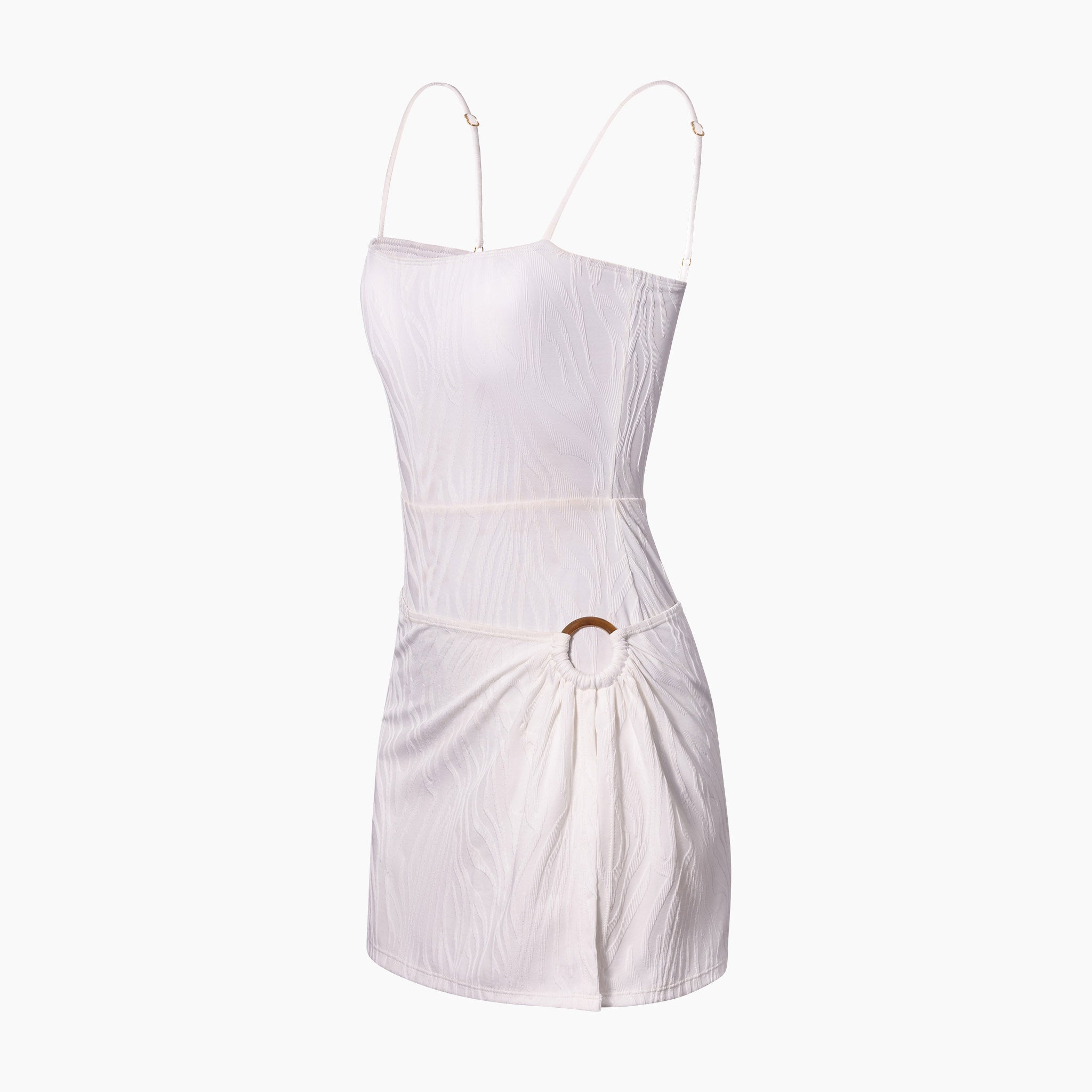 O-ring mini skirt with peekaboo leg.